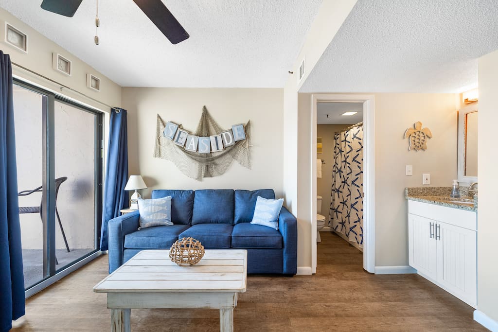 Relax with the whole family at this peaceful place to stay. ASK about OFF-SEASON SPECIALS!! Kick back and relax in this calm, stylish space. DIRECT beach studio with amazing views in every direction of the sugar white beach, natural sand dunes and beautiful landscaping. From the balcony you can hear the waves crash and watch the breathtaking sunrise and the sunset.